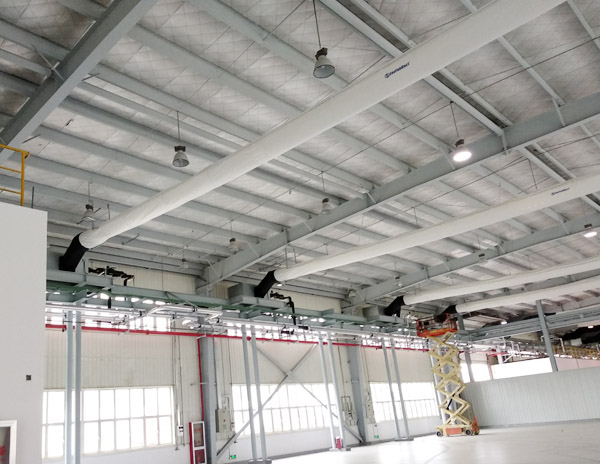 易互德風(fēng)管系統(tǒng)系統(tǒng)通過整個管壁的纖維縫隙或均勻分布的經(jīng)過設(shè)計的多排小孔出風(fēng),即沿管道經(jīng)向呈線式送風(fēng),軸向呈扇面送風(fēng),共同構(gòu)成立體面送風(fēng),舒適度極佳,且整體送風(fēng)均勻、送風(fēng)射程精確。易互德風(fēng)管系統(tǒng)系統(tǒng)設(shè)計方案比傳統(tǒng)送風(fēng)系統(tǒng)簡單,且替代傳統(tǒng)送 風(fēng)管道、風(fēng)閥、風(fēng)口、絕熱材料等單一產(chǎn)品,重量極輕,運輸 安裝簡便,全面節(jié)省系統(tǒng)總造價。